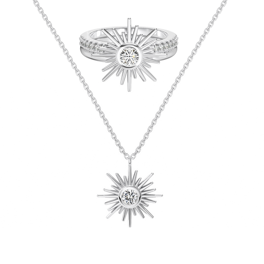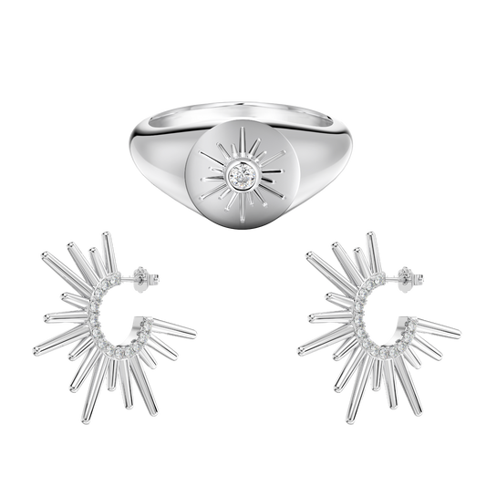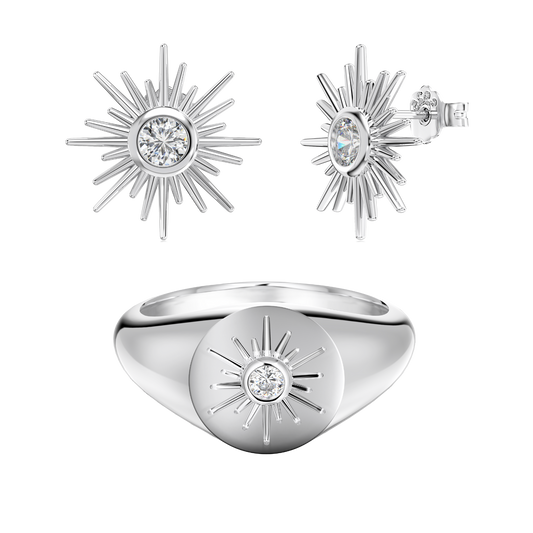 Pierścień Tańca Dune + Kolczyk Rozbłysk Słoneczny | Zestaw srebra 0,925