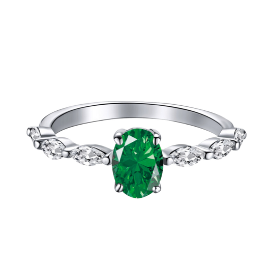 Pierścionek Z Srebra 925 | Elegancki Design Z Ciemnozielonymi Cyrkoniami 5A