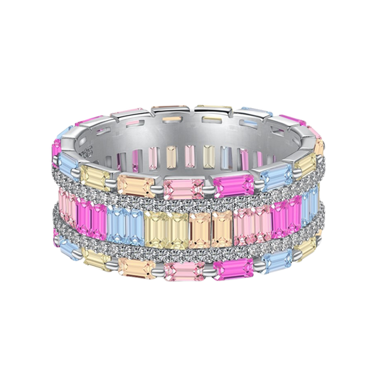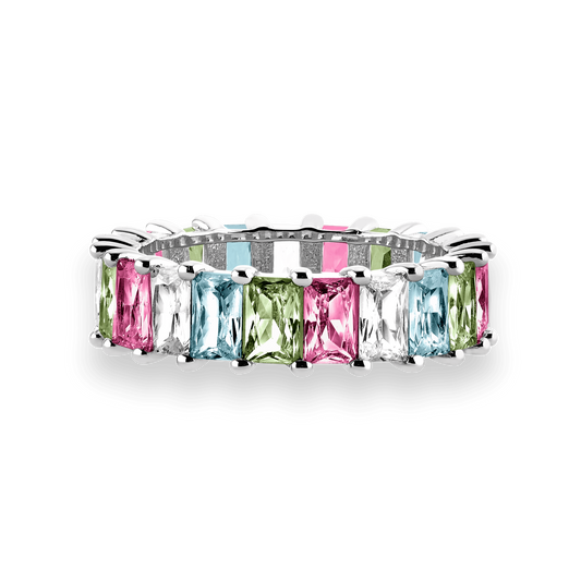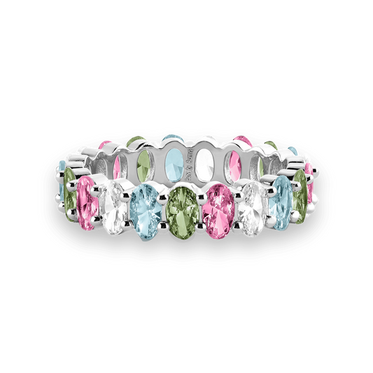 Pierścionek z kolorowymi kamieniami | Elegancki design 18k