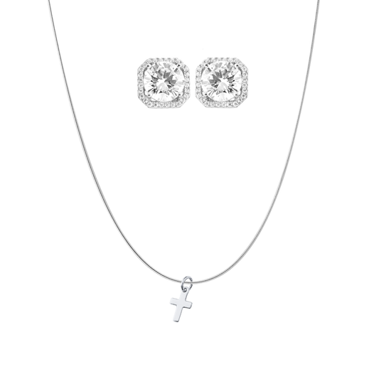 Kolczyki Ateny + Naszyjnik z Krzyżem Argos | Elegancki zestaw srebra 925