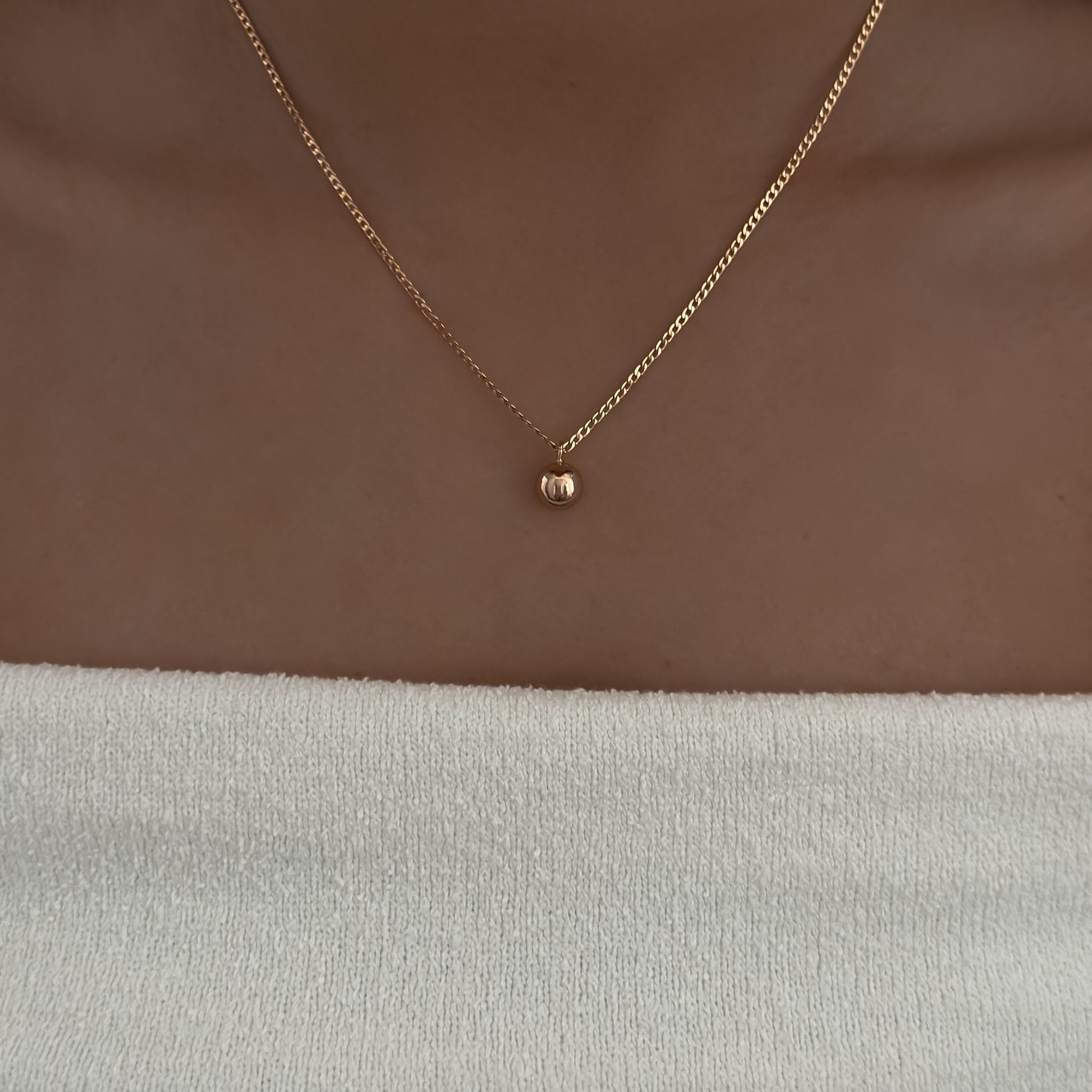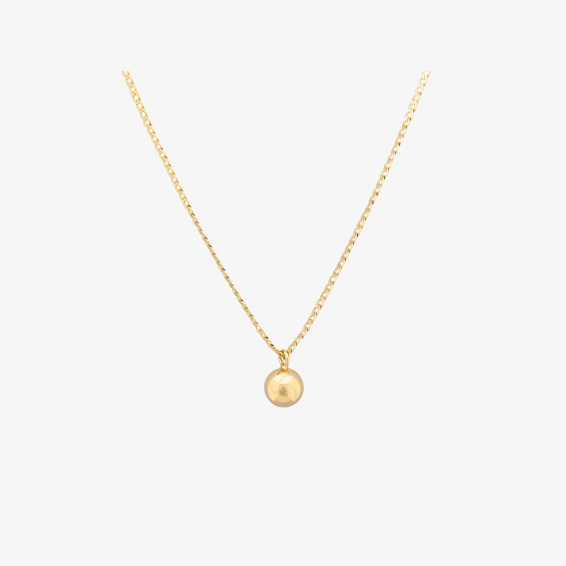 Klasyczny, cieńszy naszyjnik pancerka z zawieszką- pozłacaną kuleczką.