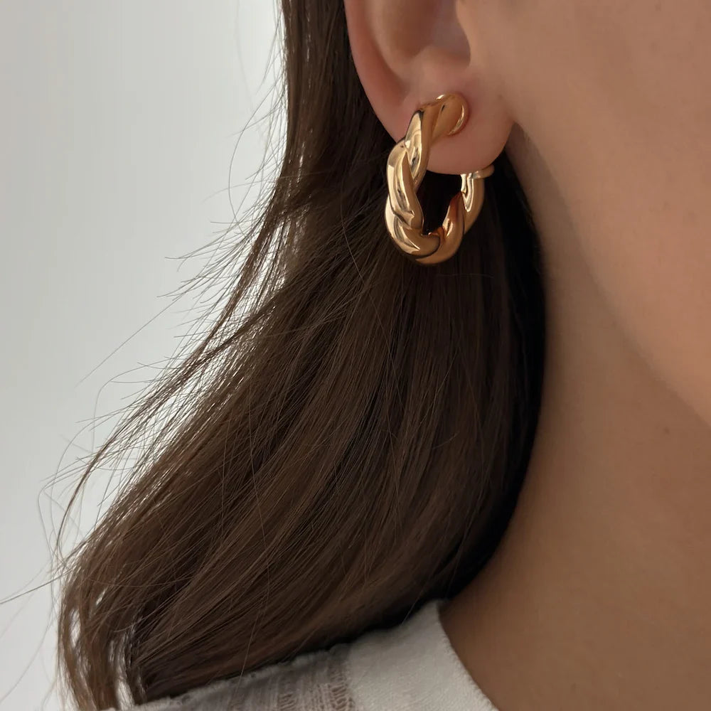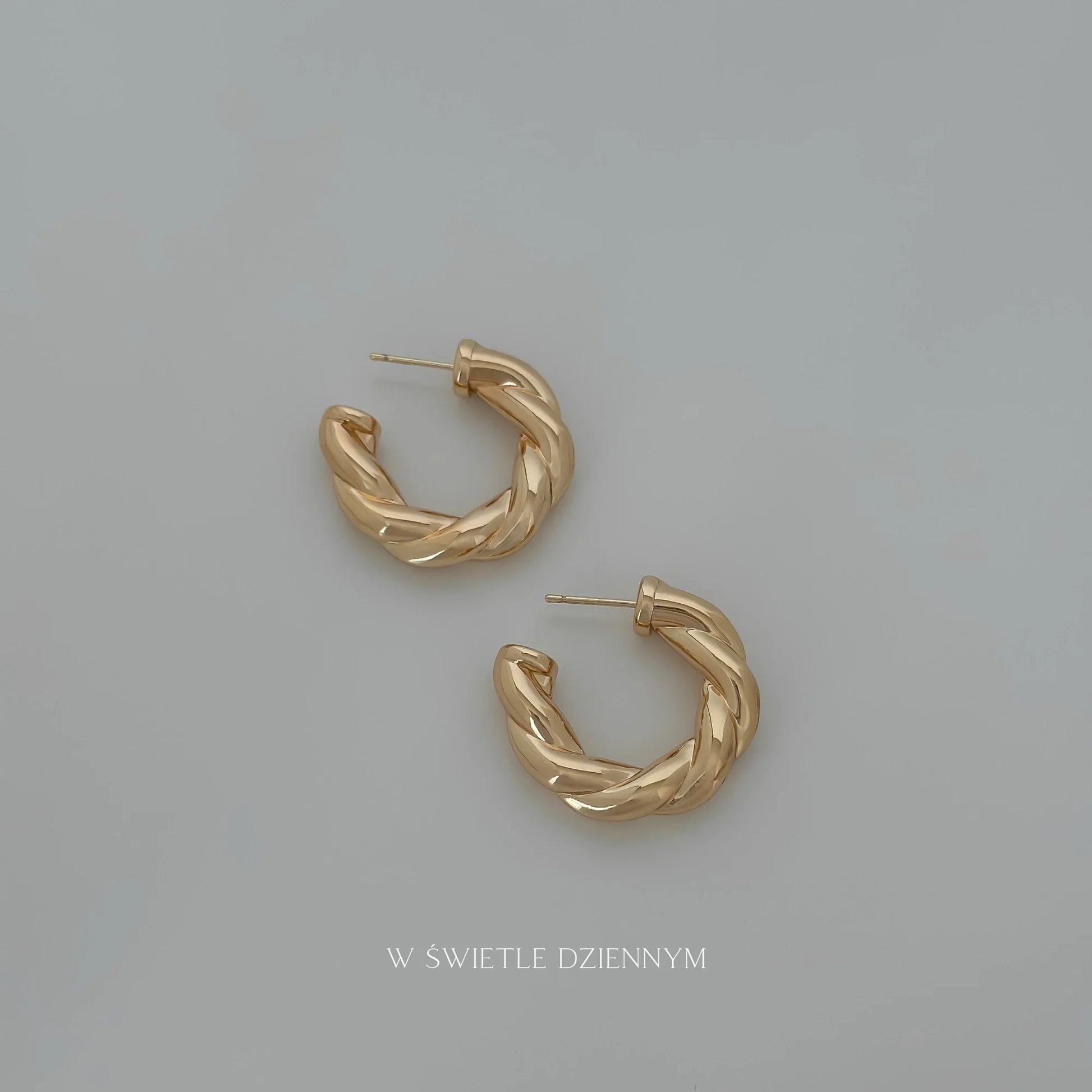 Lekkie, dmuchane kolczyki o skręcanym wzorze. O błyszczącej strukturze, zapinane na sztyft.