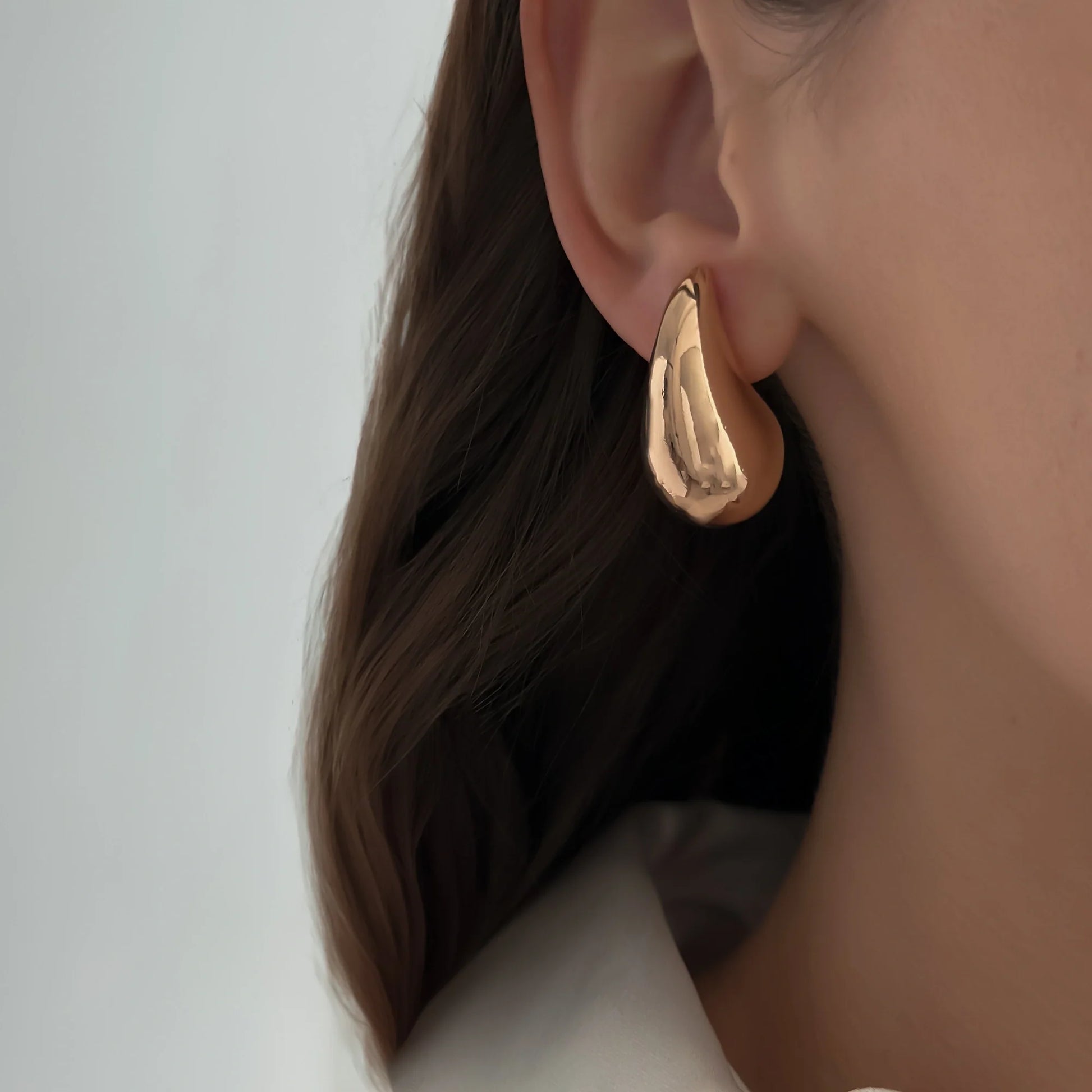 Klasyczne, ponadczasowe kolczyki łezki. O gładkiej, błyszczącej strukturze, zapinane na sztyft.